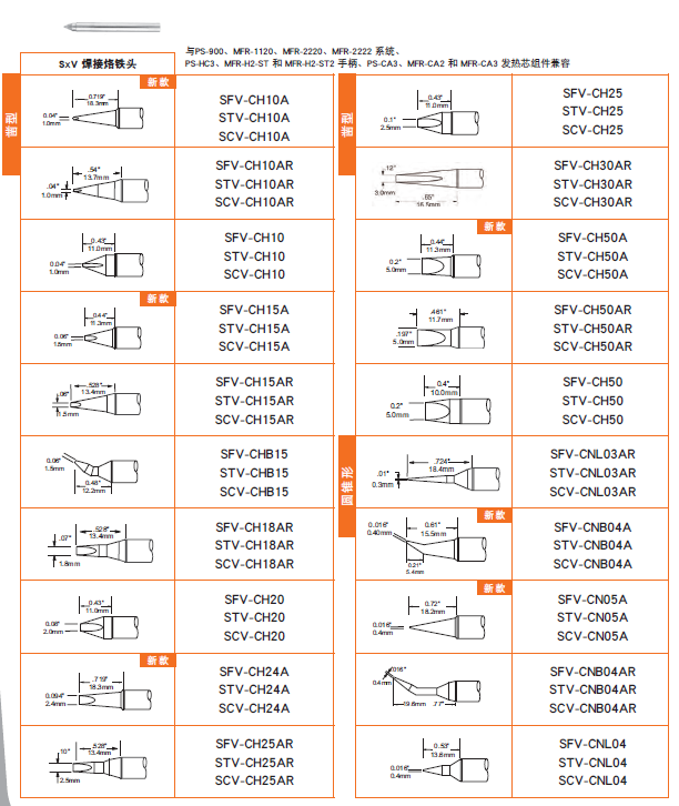 SFV/SCV/STV系列烙鐵頭